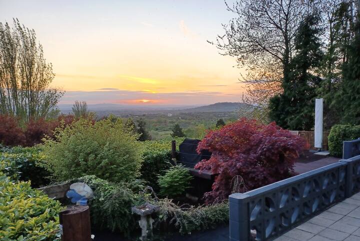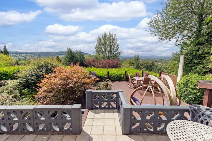 Rentoudu perheen kanssa tässä rauhallisessa 3 makuuhuoneen bungalowissa, joka sijaitsee Crickley Hillin puolella, vain 5 mailin päässä Cheltenhamin keskustasta. The property is set back from a country lane in over a acre of glorious grounds, with plenty of parking. Nauti henkeäsalpaavista näkymistä ja upeista auringonlaskuista samalla kun ruokailet terassilla, patiolla tai tilavassa keittiössä/kuppilassa. Herää linnunlauluun ja katsele peuroja vaeltamassa tämän villieläinparatiisin alueella. Fantastisia kävelyretkiä maaseudulla ja koiraystävällisiä pubeja lähellä.