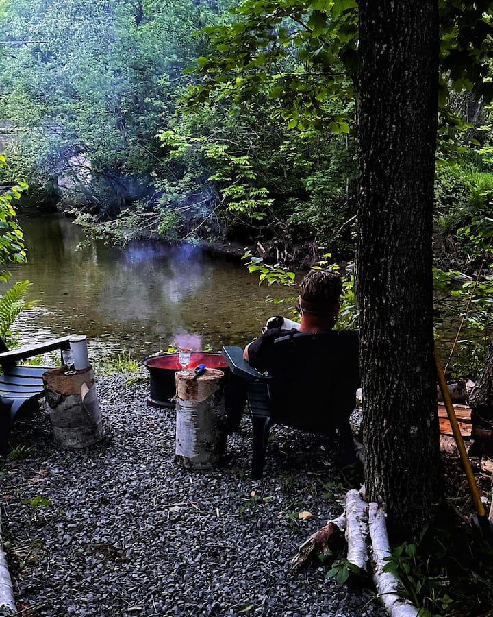 Hei, olen Brett! Partnerini Kevin ja minä loimme tämän pienen lomakohteen rauhan ja inspiraation paikaksi. Olemme molemmat taiteilijoita. Olen korujen tekijä ja vintage-löytöjen aarteenmetsästäjä, kun taas Kevin herättää puun henkiin monimutkaisella laser-taiteellaan (ja ajaa Harleya yhtä intohimoisesti).