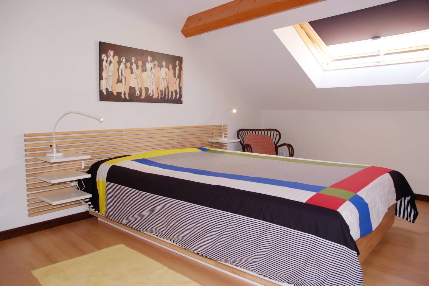 Loft. Quarto independente. Mesanine com cama individual. Outra cama individual no espaço comum. Cozinha. Zona de estar TV. Zona de refeições/ Double bedroom. Mezzanine with single bed. Another single bed in the common area. Kitchen. Living room TV.