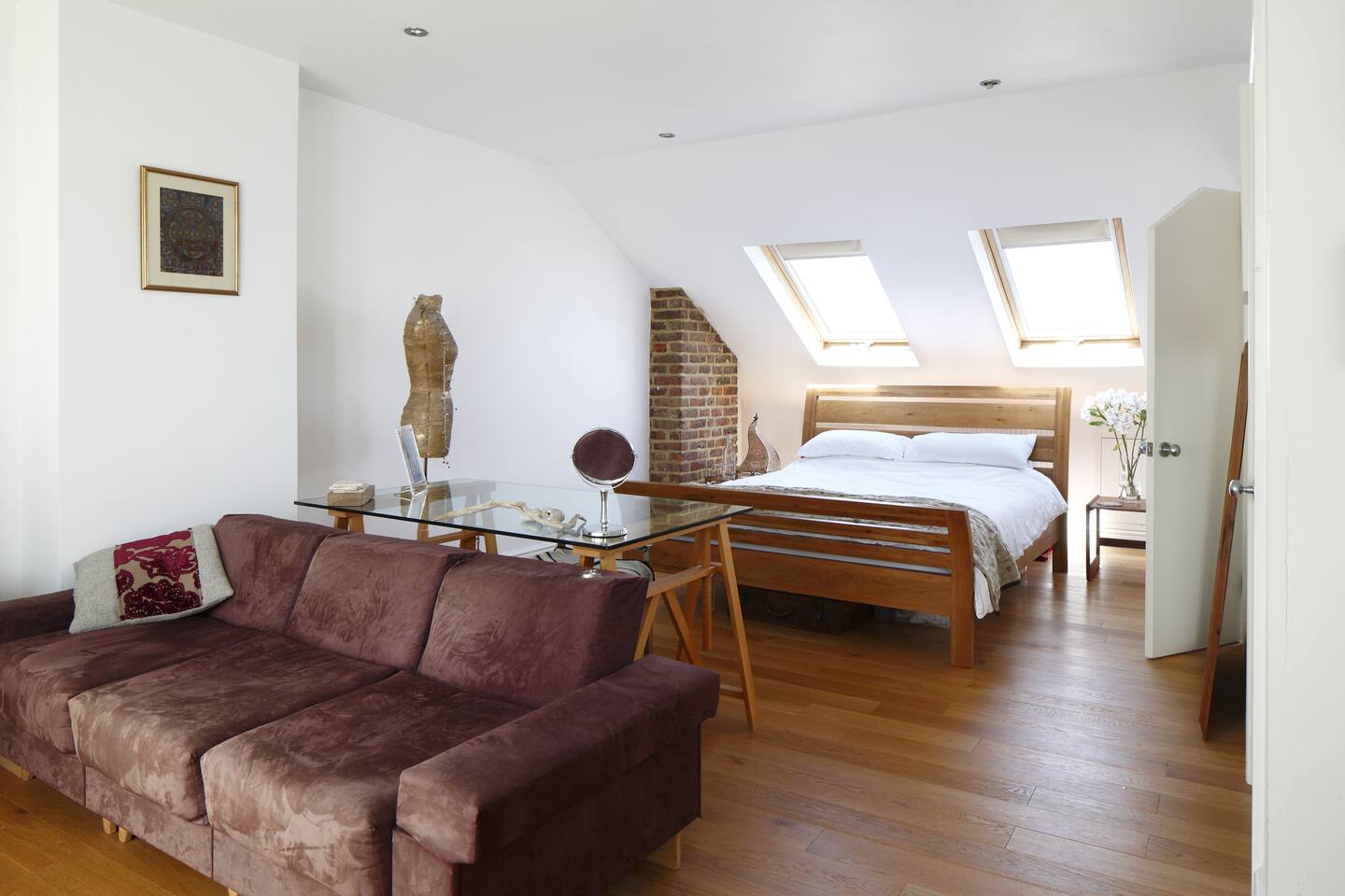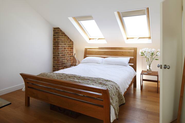A beautiful spacious & light loft room with en suite and comfy king size bed. Situated in central Hove, 10 minutes from the beach and station and a 25 minute walk into Brighton. Great pubs, cafes, shops & restaurants, on the doorstep!