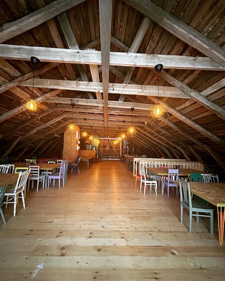 Toivon, että vietät aikaa navetan ylisillä, jos haluat valvoa ja jutella seuralaistesi kanssa, jotta aitassa säilyy nukkumisrauha. Jos haluat lueskella tai pelailla, löytyy navetan ylisten kaapista kirjoja, lehtiä ja lautapelejä.