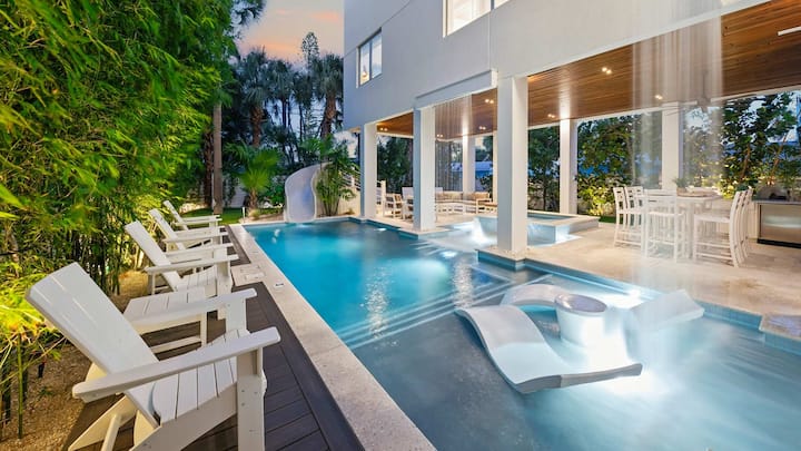 Tämä talo on upea, ja kattoterassi (hissiyhteys) on epätodellinen sen tarjoamien 360 asteen näkymien suhteen! Ulkokeittiöalue, jossa on jääpalakone, juomien jääkaapit ja grilli (maakaasu), keittiömestarille ei ole parempaa näköalaa koko Siesta Keylle. Tarjolla on useita ruokapaikkoja, mukaan lukien juhlapöytä 12 hengelle. Mökissä on myös aurinkotuoleja ja lepotuoleja, joista on näkymä lahdelle, sekä takapihalla nurmikolla oleva alue, jossa on kaikenlaisia pelejä, istumapaikkoja ja suuri televisio elokuvien katsomista varten.” Tämä on todella merkittävä kohde! Lämmitetyssä suolaisen veden uima-altaassa ja kylpylässä on vesiliukumäki, kaksi aurinkohyllyä, jotka sopivat täydellisesti oleskeluun tai lapsille leikkimiseen, ja kaksi vesiverhoa, jotka satevat katosta uima-altaaseen ja luovat ihanan tunnelman. Katetulla patiotilalla on 2 suurta älytelevisiota, useita istuin- ja ruokailuvaihtoehtoja, pöytätennis ja minigolf! Nämä tilat ovat kaikki aidatulla takapihalla yksityisyyden ja turvallisuuden takia, joten se on perheystävällinen ja täydellinen kohteen lemmikkiystävälliseen käytäntöön (lisämaksuja ja rajoituksia sovelletaan). Kun nouset tähän kohteeseen, löydät useita parvekkeita, joissa on istuimet ja upeat näkymät kaikille tasoille, ja joka päättyy jättimäiselle kattoterassille, jolla on laajat avoimet Meksikonlahdelta ja Siesta Key -näkymät. Tässä lähes 4 000 neliömetrin suuruisessa kohteessa on kohoavat 10 jalan katot, joten se tuntuu avoimelta ja tilavalta kaikkialla! Pohjapiirros on todella kutsuva perheelle tai matkaryhmälle. Kaikilla tasoilla on upeat näkymät ja parvekkeet. Tässä kohteessa on hissi, josta on palvelu kaikkiin kerroksiin, mukaan lukien kattoterassi. Tässä kohteessa on 6 makuuhuonetta (6 kylpyhuonetta) ja 6 kylpyhuonetta. Tarjolla on 5 king-vuodetta ja räätälöity queen-vuode. Se nukkuu mukavasti 14 ihmistä vuoteissa. The great room is on the top floor and that offers the best views for everyone to enjoy. It is set up as the perfect gathering space that includes the kitchen, living, and dining areas of the home with access to a balcony with great views. Keittiö on täysin varusteltu, ja tarkoitamme sitä, koska tiedämme, miten tärkeää se on sinulle, arvokkaille vieraillemme! Sen lisäksi, että se on varustettu, se on myös varustettu tuotteilla ja valmistajilla, joihin luotat. Tässä kohteessa on myös klubihuone tai toissijainen asuintila. The club room is on the first living level.This Siesta Key luxury vacation rental features Smart TVs with cable and streaming services, as well as Free Wi-Fi throughout the property - including the outside areas for complete coverage for all of your work or personal needs. Televisiot kaikissa makuuhuoneissa. Esteettömyys - kohteen hissin lisäksi pääsy kaikille tasoille, useimmat oviaukot ja kulkutiet ovat vähintään 30 tuumaa ja suihkuja kylpylöissä 1-5. Ole hyvä ja tutustu tämän kohteen kuviin, 3D-esittelyyn ja videoon.