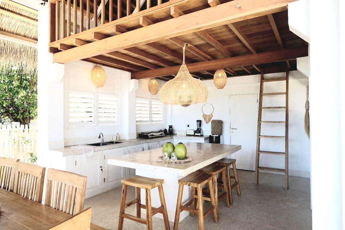 Ylellisyyttä luonnon helmassa. Nukahda tähtitaivaan alla. Herää paratiisiin, jossa aamiainen on valmiina! Turkoosien vesien yläpuolella, missä paljasjalkainen ylellisyys kohtaa meren rytmin. Nauti päivittäisestä snorklauksesta, surffauksesta ja uimisesta taivaansinisessä meressä tai uima-altaassa. Rento siesta, kultainen auringonlasku, kylmä juoma kädessä. Ihanteellinen perheille, pariskunnille tai ryhmille. Luonnonpuusta ja kivestä valmistettu kohde kutsuu sinut hidastamaan, hengittämään syvään ja nauttimaan saarella vietetystä ajasta.