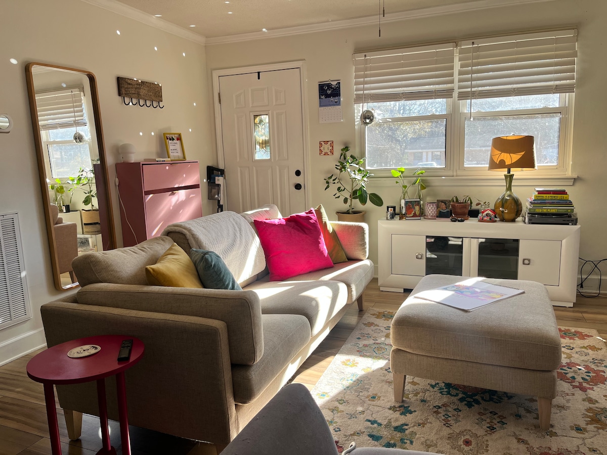 **Vieraan on allekirjoitettava vuokrasopimus NC Vacation Act -lain mukaisesti.** Äskettäin remontoitu yhden makuuhuoneen huoneisto historiallisessa "Uptown Roxborossa". Kävele paikallisiin ravintoloihin, kahviloihin ja panimoihin. Lyhyt ajomatka viinitarhoihin, virkistysjärviin ja V.I.R.:iin. 30-45 minuutin päässä Durhamista, Chapel Hillistä, Raleighista ja Danvillestä, VA. Nauti tyylikkäästä majoittumiskokemuksesta tässä keskeisellä paikalla sijaitsevassa kohteessa.