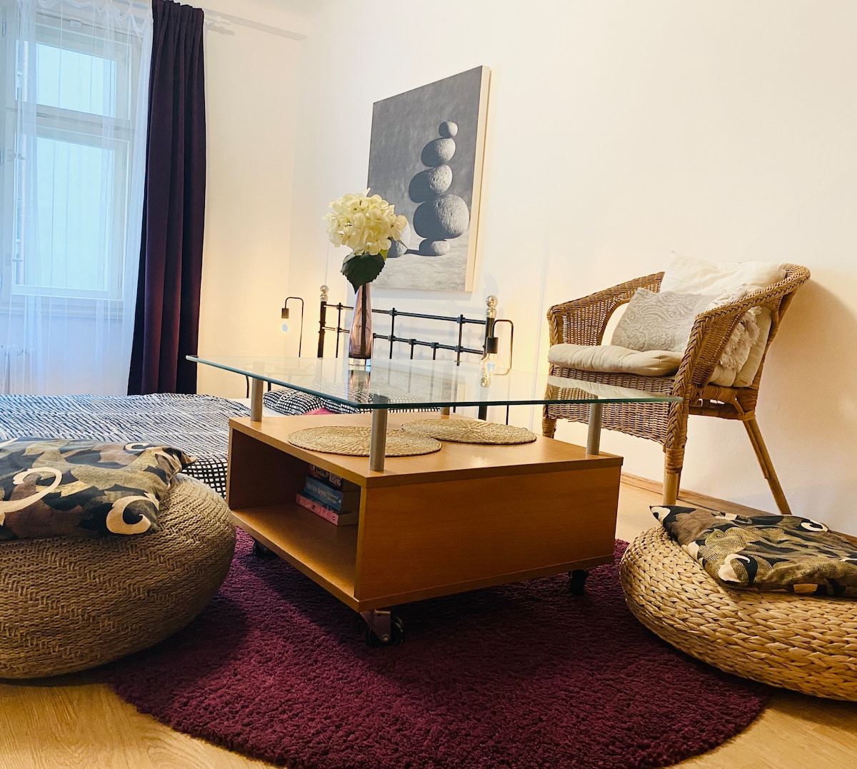 Vastalääke tylsille hotellihuoneille :) Asuntoni sijaitsee historiallisen kerrostalon ensimmäisessä kerroksessa, ja sen alkuperäiset ominaisuudet, kuten korkeat katot ja parkettilattiat, säilyttävät 1900-luvun alkupuolen Prahan asuntojen loiston. Ominaisuudet: - keittiö (ja Nespresso) - kylpyamme, suihku, pesukone, vuode 200 x 160 cm. Naapurustossa on "paikallista" viehätystä, matkustaminen keskustaan on helppoa, ja naapurissa on siisti vietnamilainen kauppa.