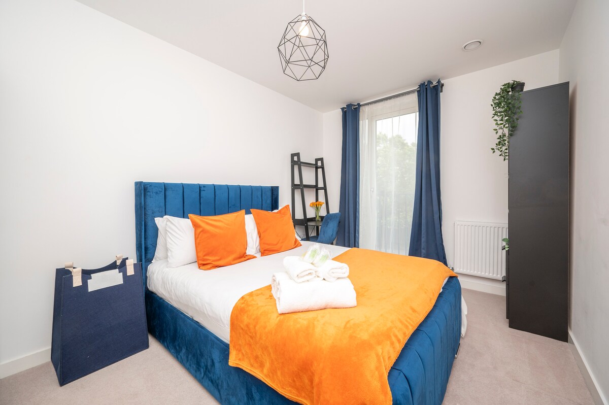 2 makuuhuonetta Beckenham-huoneisto, jossa on ympärivuorokautinen kuntosali ja WorkHub