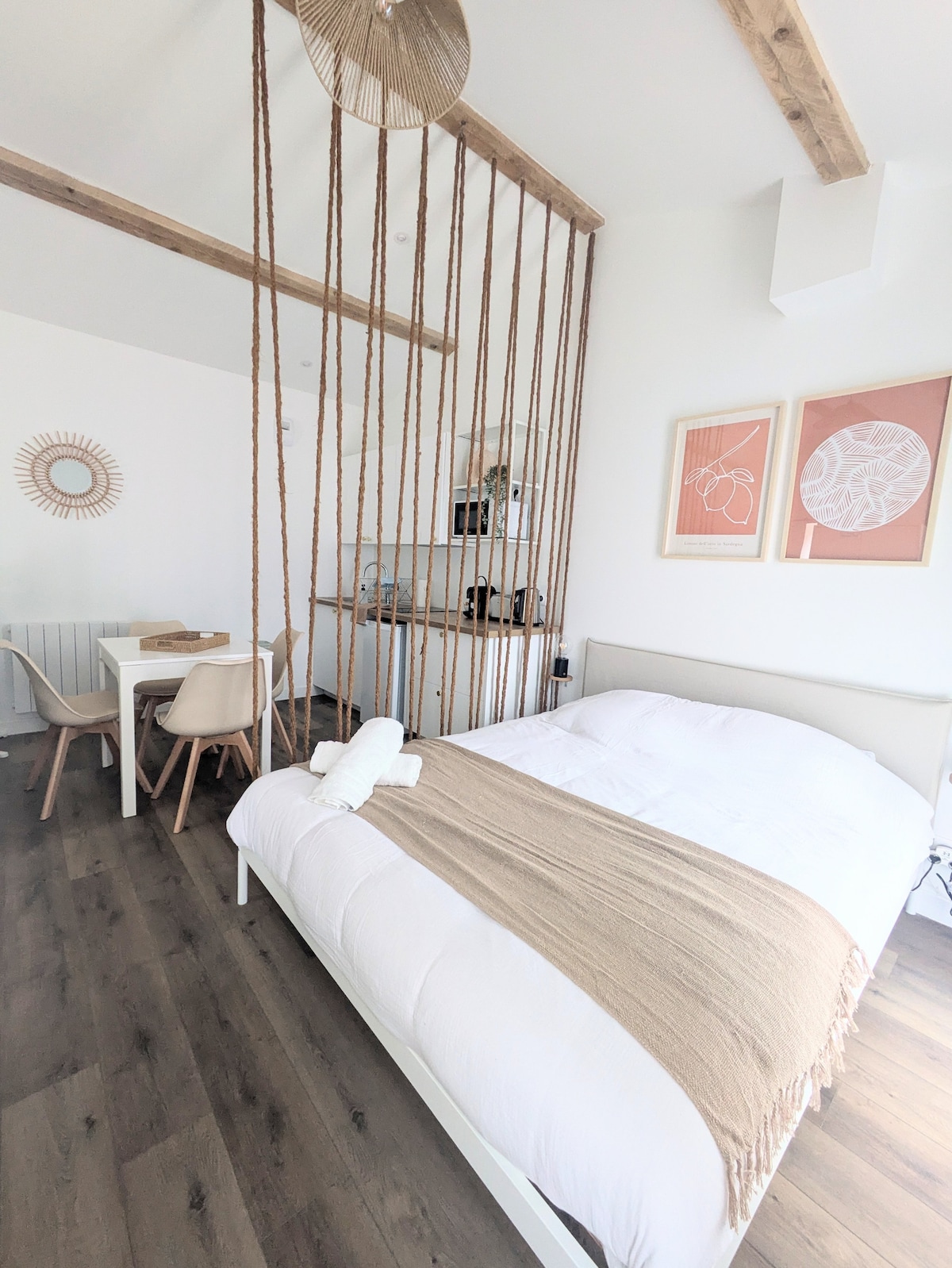 Tule viettämään mahtavaa lomaa ja tunne olosi kotoisaksi tässä noin 65 m2:n asunnossa! Täydellinen varustus (wifi, astianpesukone, pesukone, keittiö, vedenkeitin, dolce gusto...) Tulitpa lomalle tai töihin, voit rentoutua, kaikki on kävelyetäisyydellä (pieniä kauppoja, baareja, ravintoloita, elokuvateatteri, linnoitus, satama...) Mahdollisuus yhdistää kaksi yhden hengen vuodetta yhdeksi suureksi parisängyksi.
