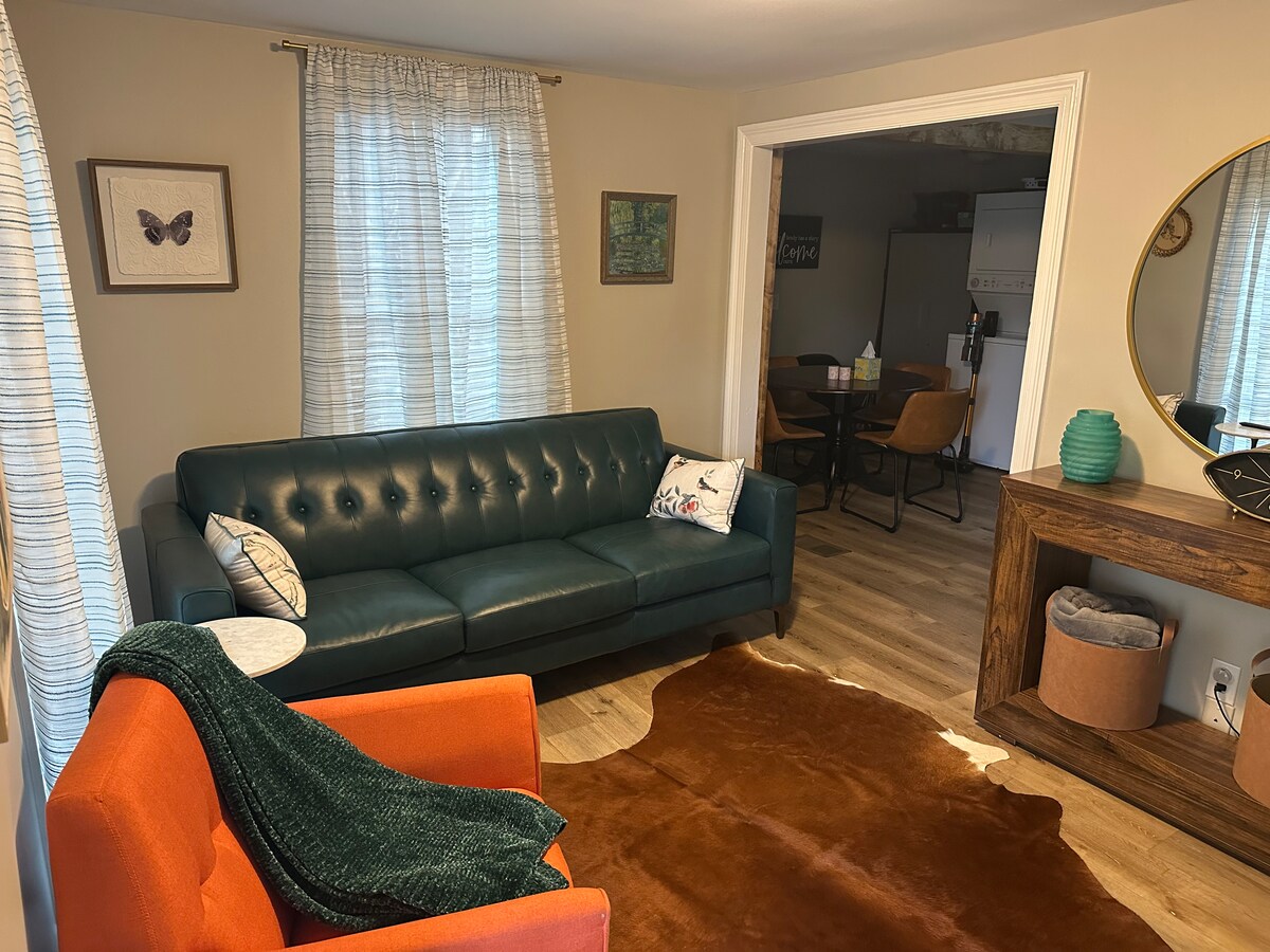 Mothershedin perhe rakensi Whispering Oakin rakkaudella vuonna 1908. Sitä koristaa massiivinen tammi, jossa on keinu. Olemme jakaneet talon kahteen yksityiseen huoneistoon. Secret Hideaway on oikealla. Siellä on 3 tilavaa huonetta. Olo-/ruokailuhuone viereisen keittokomeron kanssa, suuri makuuhuone, jossa on kaappi, ja ylellinen kylpyhuone, jossa on suihkualue. Siellä on ihana kuisti, jossa on keinu, josta on uskomaton näkymä auringonlaskuun, ja kaunis takapiha, jossa on suuri katettu kuisti.