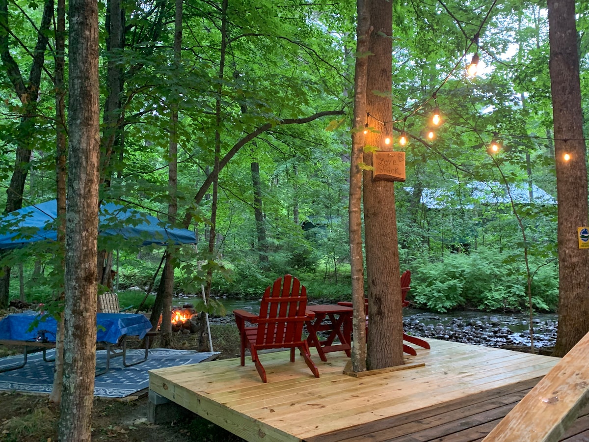 Ei lisämaksuja! Herää rentouttavan Adirondack-puron ääniin ja näkymiin viehättävässä, pienessä Elizabethtownissa, New Yorkissa. Rakennus on takapihallamme ja sisätilat ovat noin 10x12, ja siellä on queen-vuode, lipasto, minijääkaappi, kahvinkeitin, pistorasiat, valo sisällä ja avoimella kuistilla, TV ja lämpö/tuuletin. Nauti aamukahvista tai lue kirjaa tulen äärellä. Ole hyvä ja tuo omat liinavaatteet queen-vuoteeseen ja pyyhkeet. Sisäkäyttöön tarkoitetut peitot toimitetaan. Suihku/WC ovat jaettuja