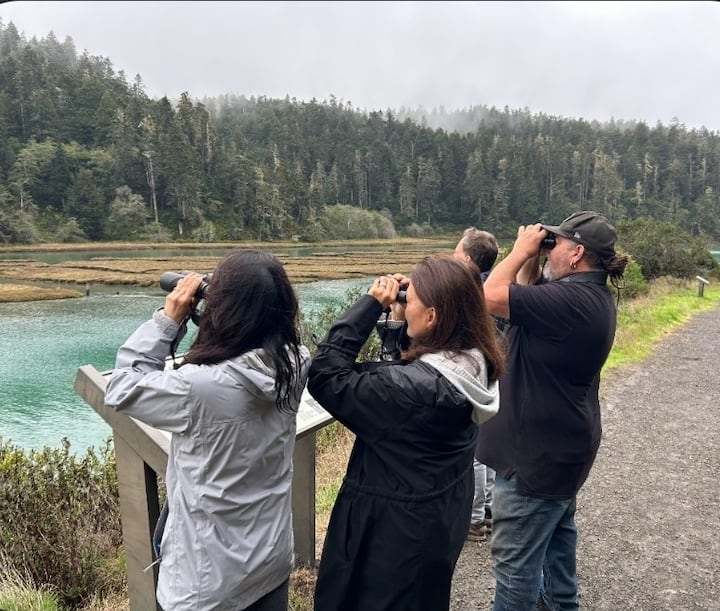Linnuston tarkkailua kokeneen paikallisen oppaan kanssa