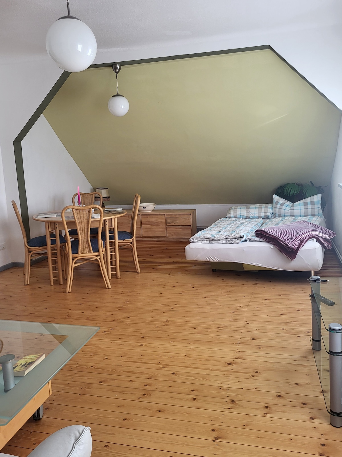 Tarjoamme valoisaa, erittäin tilavaa, viihtyisää ja täysin kalustettua ullakkoasuntoa. Erittäin suuri parveke (noin 3x7m) länteen päin on erinomainen vapaa-ajan ja virkistyskäyttöön, erityisesti illalla. Talo sijaitsee idyllisellä paikalla Lübbenin hyvin hoidetun esikaupungin reunalla. Lübben on portti Ober- ja Unterspreewaldiin ja erinomainen lähtöpaikka retkille molemmille alueille. Gurkenradweg kulkee suoraan talon ohi. Isäntinä olemme teille mielellämme vinkkejä.