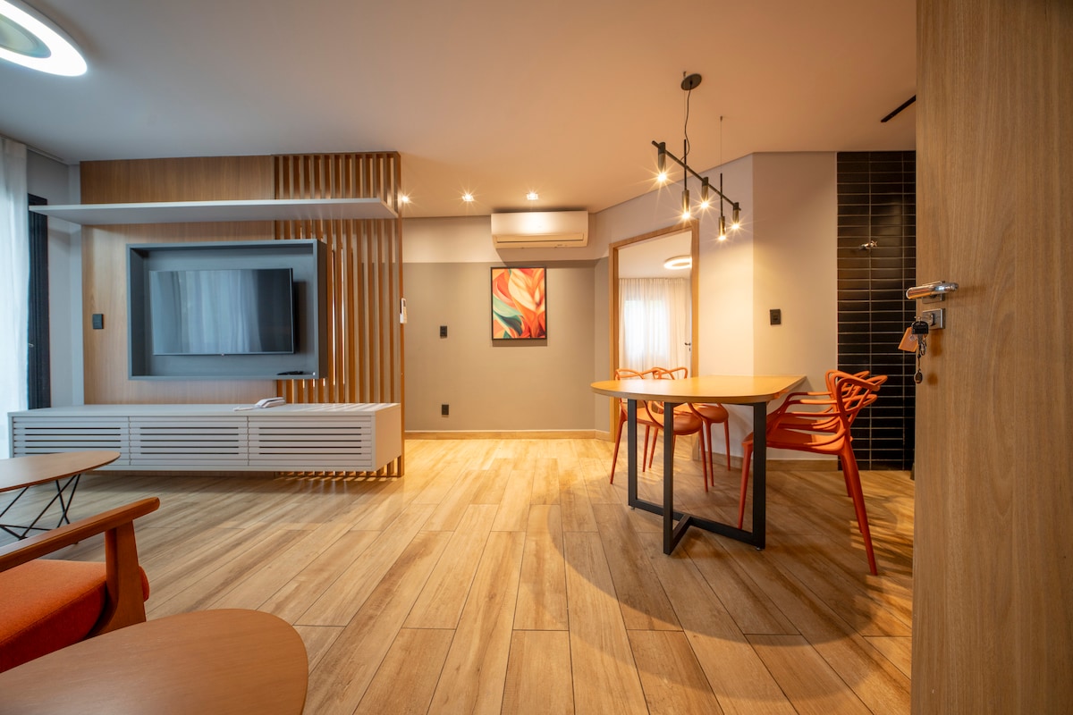 Majoitu modernissa huoneistossa, jossa on puhdas design ja käytännölliset ja mukavat ympäristöt. Täältä löydät: • Mukava queen-vuode • Varustettu keittiö. Näkymä joelle • ilmastointilaite ja nopea wifi • Älytelevisio • Rakennuksen tilat: [allas/kuntosali/sauna/pysäköinti/24 tunnin vastaanotto] Täydellinen liikematkoille tai lomamatkoille, strategisella paikalla, lähellä ostoksia, tärkeintä rantakatu, ravintola ja lentokenttä