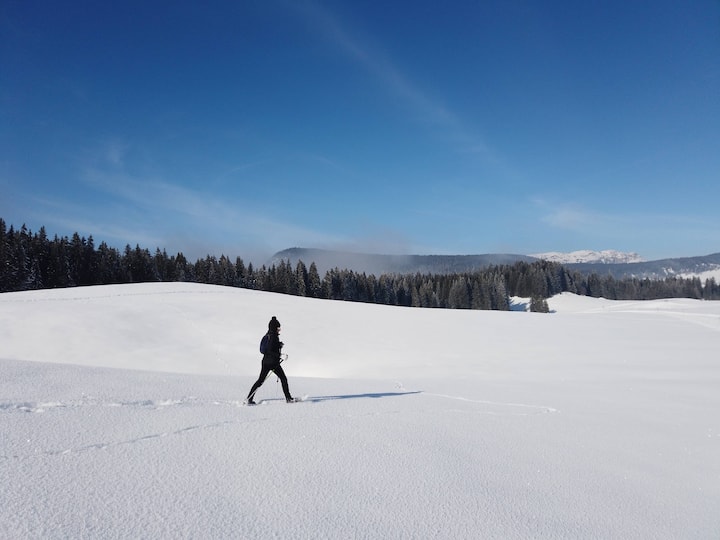 Opastettu lumikenkäretki Plateau des Glières -alueella