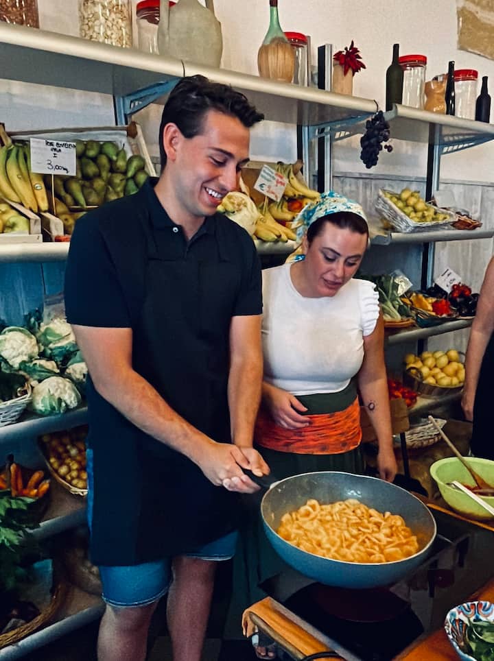 Apulialaisen tuorepasta-kurssi vihanneskaupassa