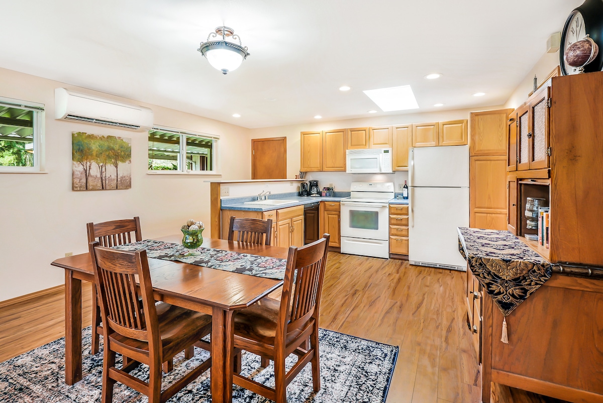 Tervetuloa toiseen kotiisi! Nauti tilavasta asumisesta suuren kaupungin ulkopuolella, mutta pÀÀset helposti kaikkiin Seattlen kaupungin nÀhtÀvyyksiin ja mukavuuksiin. TÀssÀ alemman tason vierassviitissÀ on oma sisÀÀnkÀynti ja yhteinen suuri piha. SiellÀ on suuri olohuone, suuri makuuhuone, oma kylpyhuone ja tÀysin varustettu keittiö, jossa on kaikki tarvitsemasi laitteet ja astiat. Puistot, ravintolat, ruokakaupat, lautat ja julkinen liikenne lÀhistöllÀ tekevÀt tÀstÀ erinomaisen sijainnin.