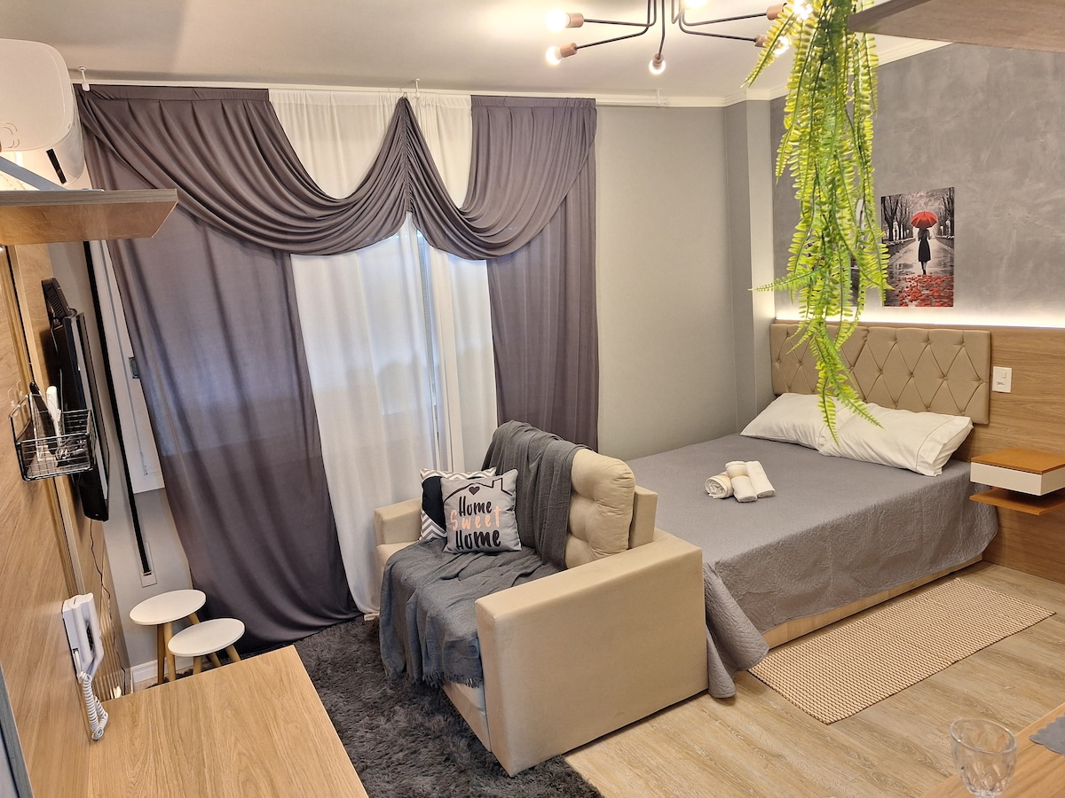 Sijaitsee vain 100 metrin päässä IOT:stä, 53 metrin päässä São João -apteekista ja helposti saavutettavissa supermarkkinoille ja Bella Città Shoppingiin. Tutustu uuden studion mukavuuteen, joka on kalustettu ja varustettu tarpeisiisi sopivilla laitteilla ja välineillä. Jokainen yksityiskohta suunniteltiin käytännöllistä ja kodikasta majoittumista varten. Studiossa on räätälöityjä huonekaluja, suunniteltu valaistus ja viehättävä sisustus, jotka luovat ihanteellisen ympäristön rentoutumiseen päivän jälkeen.