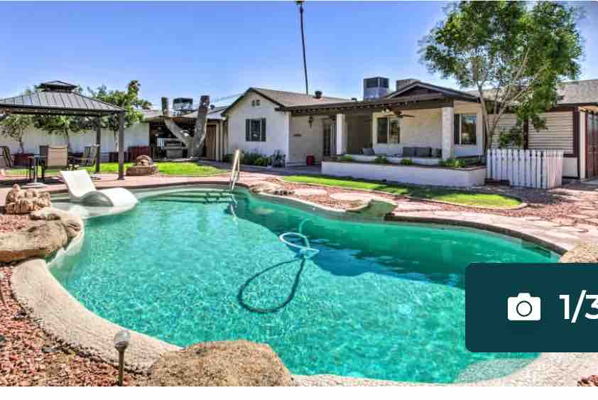 * ALENNUSHINNAT! Koe Arizona mukavasti! Tässä kauniisti kunnostetussa 4 makuuhuoneen kodissa on kaikki, mitä tarvitset rentouttavaan lomaan! Kimmeltävä lämmitetty uima-allas, biljardipöytä, lautapelejä ja televisiot jokaisessa makuuhuoneessa tarjoavat loputtomasti viihdettä. Kattavat mukavuudet saavat tuntumaan kuin kotona. Ota perhe ja ystävät mukaan! Tämä kodikas koti ja takapiha ovat valmiita AZ-auringonlaskuihin ja hauskoihin hetkiin! VARAA MEIDÄT NYT! **Lämmitetty uima-allas saatavilla päivittäistä maksua vastaan *Uima-altaan lämmitystoiminnot on pyydettävä käyttöä varten.