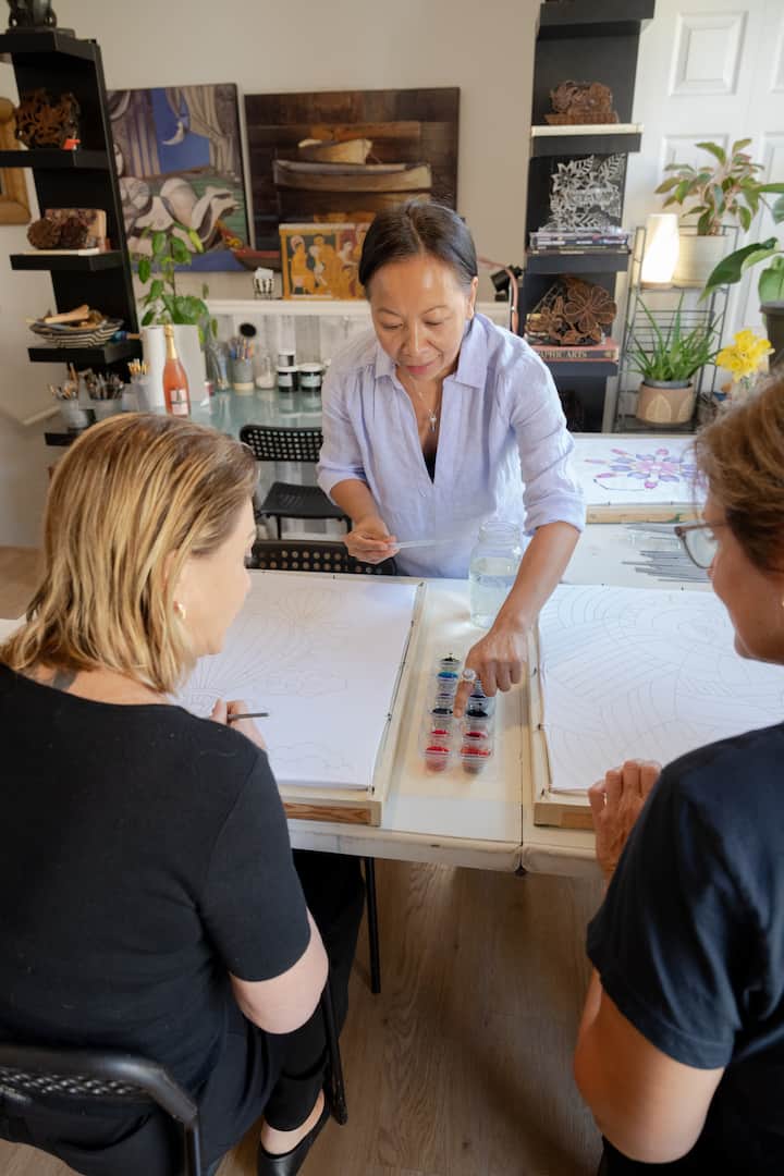 Maalaa batikkitaidetta malesialaisen taiteilijan kanssa