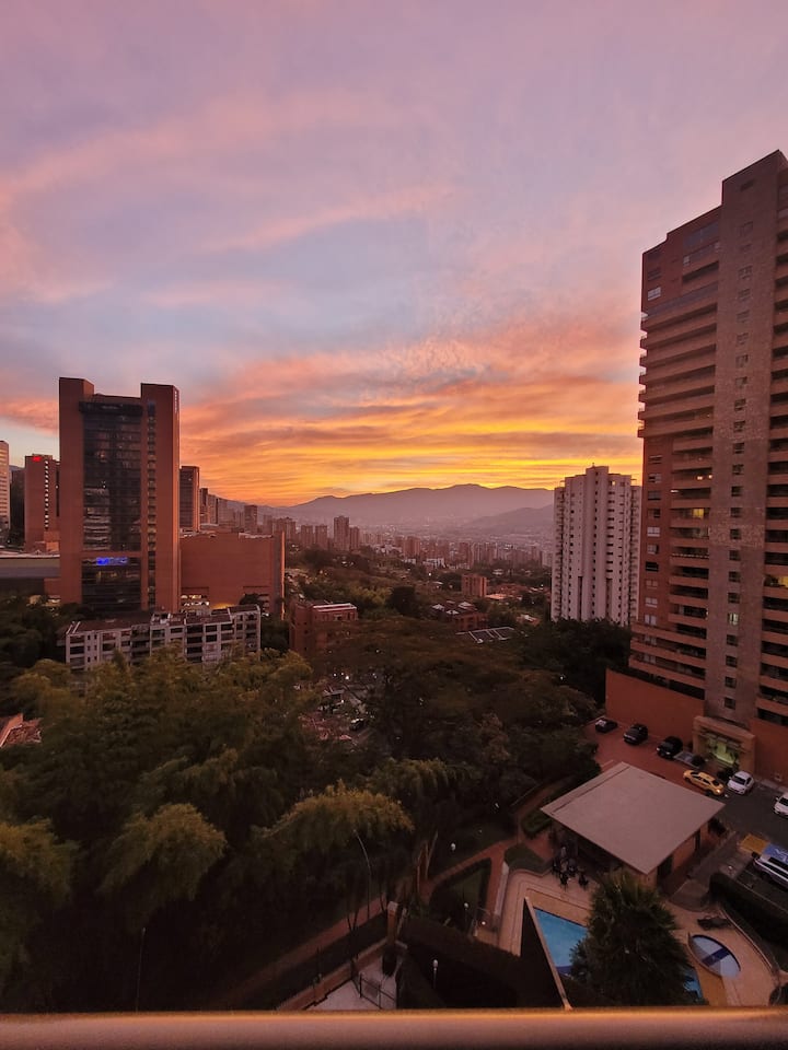Varjoliitoa Medellínissä aamiaisen kera
