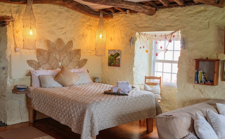 Viihtyisä azorilainen kivimökki: Atlantin näkymä ja puutarha
