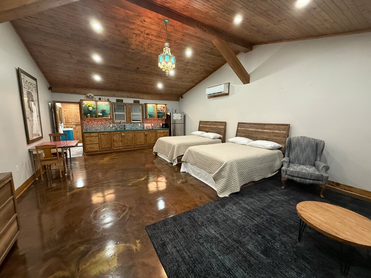 Tervetuloa maalle! Tämä viihtyisä 400 m2: n mökki on täydellinen niille, jotka etsivät rauhallista majoitusta rauhallisella maaseudulla. Tilassa on kaksi huonetta: Keittiössä/oleskelutilassa on uuni, jääkaappi, mikroaaltouuni, Keurig (kahvi ja tee saatavilla), televisio ja vuodesohva. Makuuhuoneessa on queen-vuode, täydellinen kylpyhuone sekä pieni kaappi, jossa on pesukone ja kuivausrumpu. WiFi on käytettävissä, mutta suosittelemme, että jätät älypuhelimen tähtien ja auringonnousun varalta.