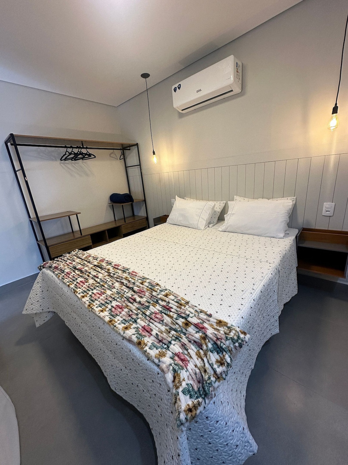 Moderni yksiö Araxássa, jossa on ilmastointi, varusteltu keittiö ja oma autotalli. Äskettäin rakennettu tila, joka on suunniteltu tarjoamaan mukavuutta ja käytännöllisyyttä ja joka sopii erinomaisesti liikematkoille tai lomamatkoille. Hyvä sijainti, josta on helppo pääsy kaupungin pääteille ja joka on vain muutaman minuutin päässä keskustasta, Grande Hotelista ja Termas de Araxásta. Kohteessa on kameravalvontaa ulkotiloissa ja valvottu pääsy, mikä lisää mielenrauhaa.