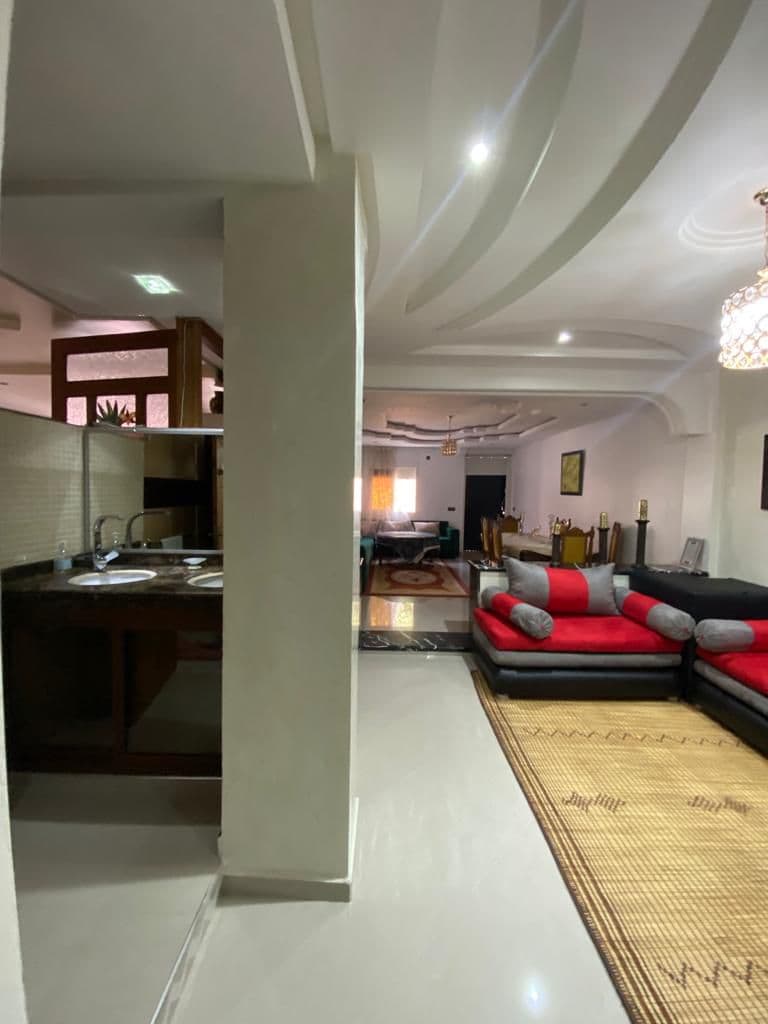 Tarjoan teille ylellisen 150 m2:n huoneiston rauhallisella alueella Safin kaupungin keskustassa. Villa-alueella on kaunis näkymä upealta terassilta, jossa on perinteinen suihkulähde kukkaruukkujen ympäröimänä ja ruokapöytä, joka on koristeltu marokkolaisella zalij-tekstiilillä. Täällä voi viettää hyvää aikaa ja nauttia auringosta. Kohteessa on 2 makuuhuonetta, erittäin moderni olohuone, hyvin varusteltu keittiö (kahvinkeitin, liesi jne.), wifi-yhteys ja 65 tuuman televisio.
