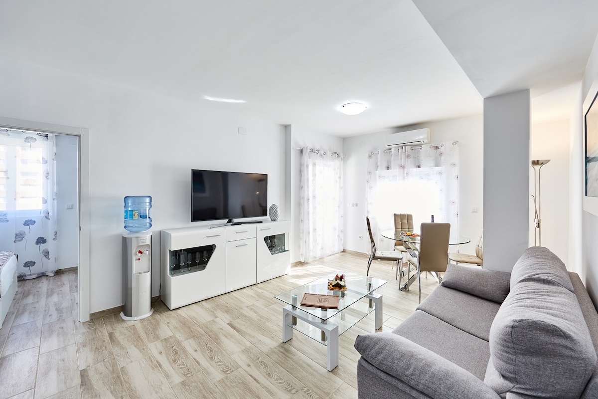 Uudet, modernit ja tilavat huoneistot, joissa on yksi makuuhuone, Benidormin historiallisessa keskustassa, vain 50 metrin päässä rannasta. Suunniteltu hyödyntämään tilaa parhaalla mahdollisella tavalla raikkaalla ja välimerellisellä tyylillä. Kapasiteetti 6 henkilölle. Älytelevisio ja ilmainen WIFI. Galleria, jossa on pesukone. Sen sijainti on ihanteellinen perheille ja pariskunnille, jotka haluavat nauttia yhtä jännittävästä kaupungista kuin Benidorm, jota ympäröivät ravintolat ja baarit. Rakennuksen katolla on viehättävä uima-allas, jossa voit päättää mukavan päivän rannalla.