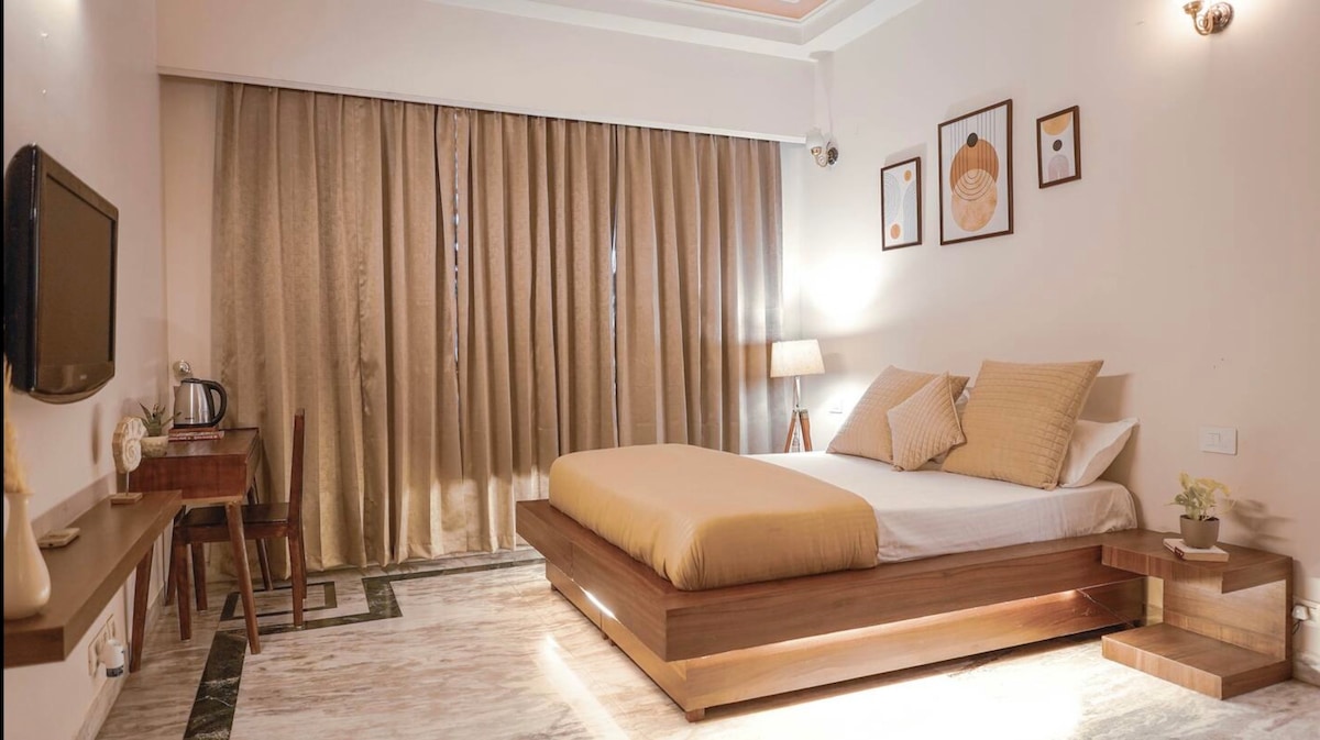 Reconnect with nature like never before. Surrounded by peaceful greenery and fresh air, our cozy retreat in Mohali, Punjab gives you a perfect escape from the busy city life. Relax in comfort with all the modern amenities you need, while enjoying beautiful views from large windows that bring nature right to you. You can also curl up by the living area and share laughter, stories, and special moments together.
