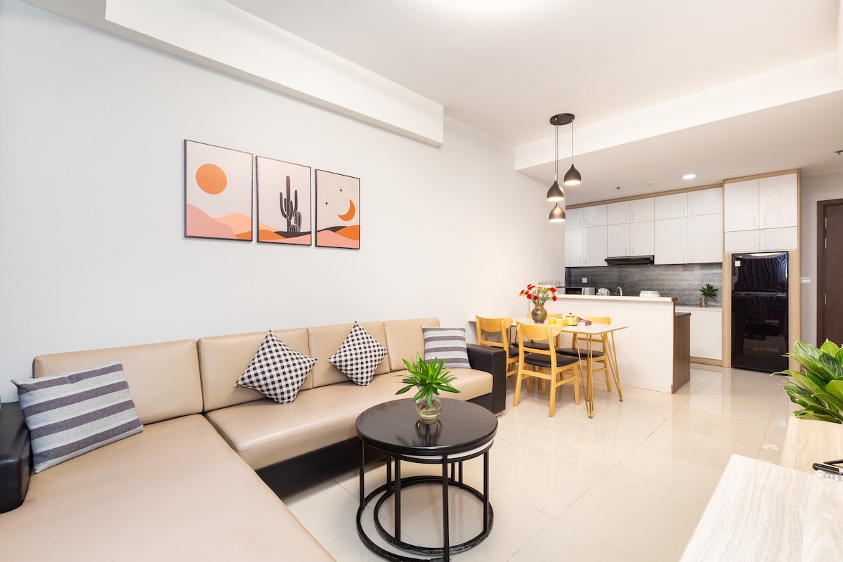 Tämä viihtyisä ja moderni 1 makuuhuoneen huoneisto sijaitsee kaupungin keskustassa, ja siellä on varmasti kaikki sekä pitkäaikaiseen liikematkailuun että vapaa-ajan majoittumiseen Ho Chi Minh Cityssä! ✔️Ympärivuorokautinen pääsy kortilla ✔️HUONEEN SIIVOUS 3 kertaa viikossa. PUHTAAT PYYHKEET MYÖS TARJOTAAN ✔️ILMAINEN juomavesi ✔️Helppo pyörän pysäköinti ILMAN KUSTANNUKSIA! ✔️ILMAINEN kokoushuoneen käyttö (ennakkoon rekisteröitymällä) ✔️Ammattitaitoinen ja ystävällinen henkilökunta