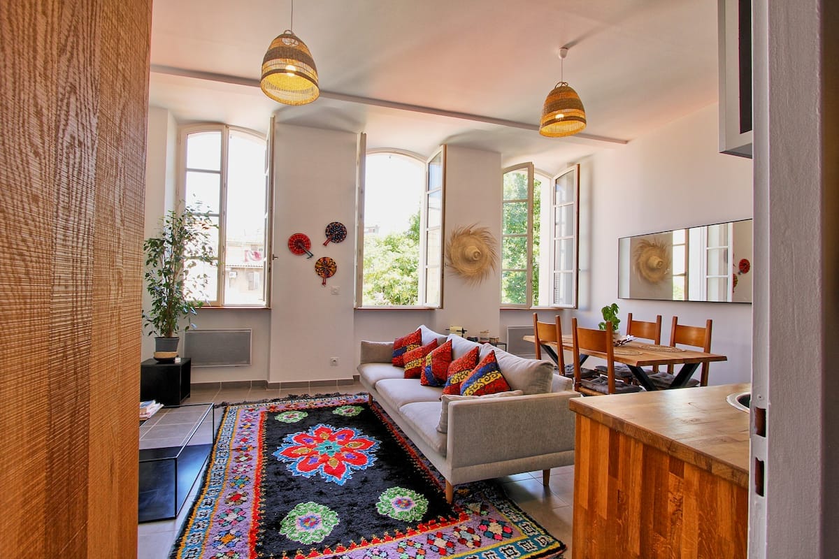 Välimeren tunnelma, suuri 40 m2 olohuone vilkkaan Plainin alueen sydämessä. Makuuhuone välikerroksessa, jossa on uusi patja kahdelle hengelle. Täysin varustettu keittiö, joka on avoin olohuoneeseen, sohva, suuri ruokapöytä, piano, ilmastointi, wifi. Kylpyhuone, jossa on italialainen suihku. Kolme suurta etelään avautuvaa ikkunaa, joista on näkymät Place Jean Jaurèsille (La Plaine). Lähellä vanhaa satamaa ja museoita Tori, kauppoja, metro, raitiovaunu lähellä.