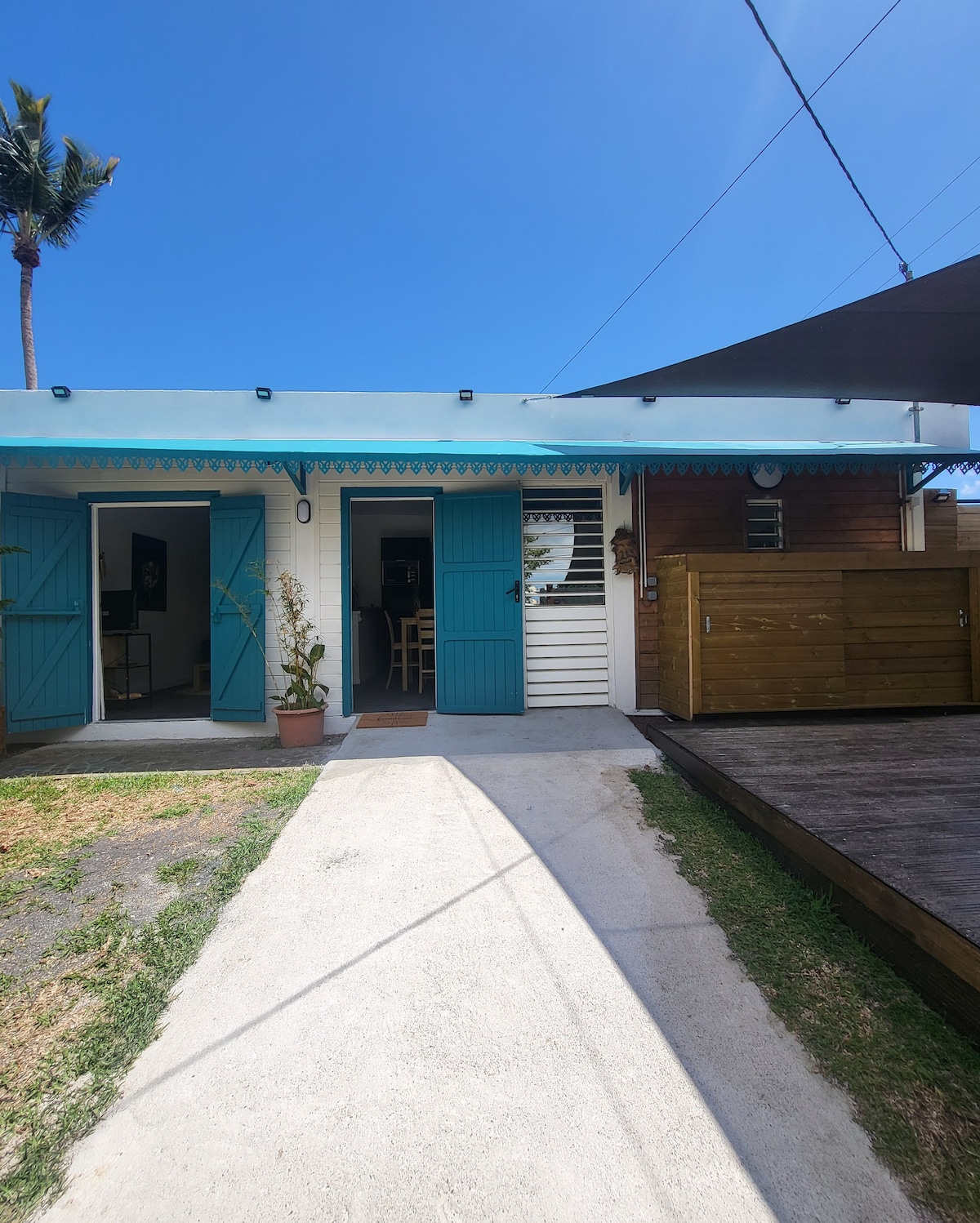 Majoitut La Possessionin kaupungin sydämessä, 5 metrin kävelymatkan päässä pääostoskadulta ja toriaukiolta. Yksiö on 25 m2, ja se on itsenäinen mökki. Tila on täysin kunnostettu: täysin varustettu keittiö, jossa on astianpesukone ja pesukone, suuri säilytystila, suihku, jonne on esteetön pääsy. Lisäksi tarjolla on katettu Varangue, jossa voi nauttia ulkotilasta.