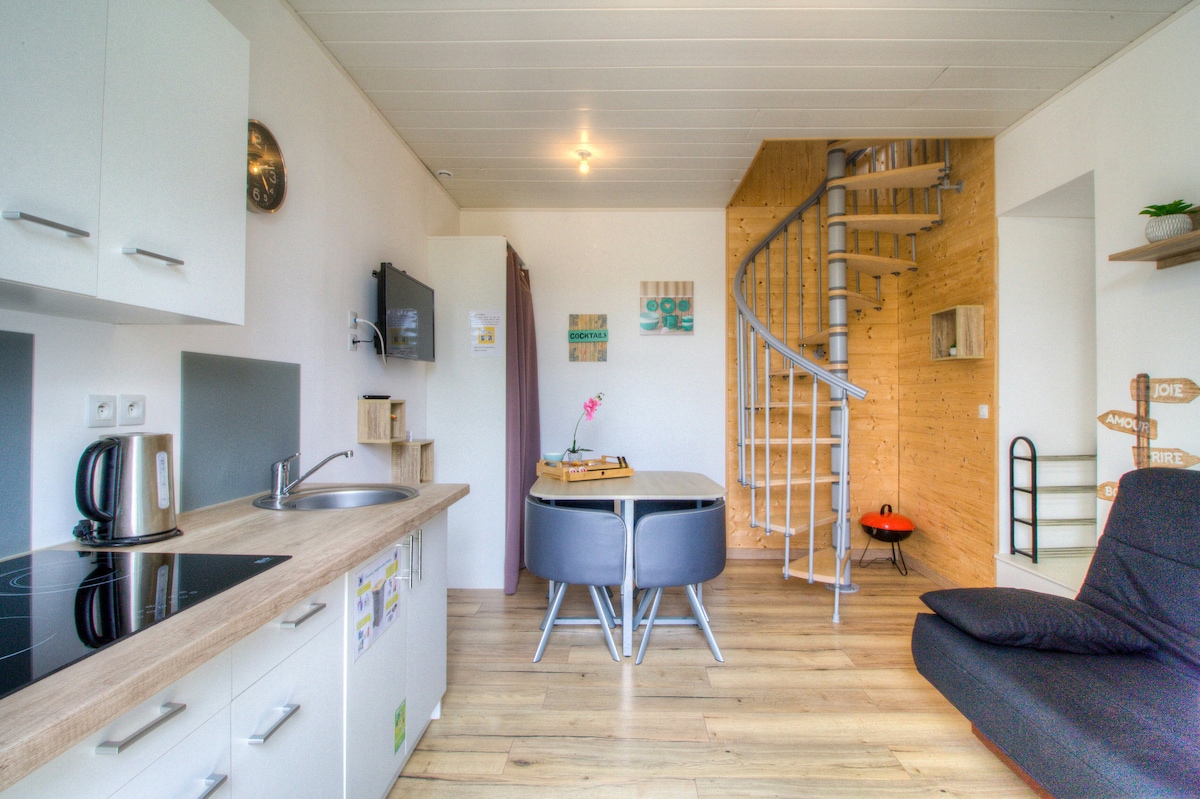 Nauti oleskelustasi Puy du Fou'ssa tässä uudessa 42 m²:n yksiössä (josta 10 m² on mezzanine-kerrosta). Sijaitsee rauhallisella alueella, ja vain 2 minuutin päässä on kaikki tarvitsemasi kaupat, kuten Intermarché, leipomot, ravintolat, pankki ja käsityöläiskauppoja. Lakanoita ja pyyhkeitä tarjotaan mukavuutesi vuoksi, ja saapumisesi helpottamiseksi avain on saatavilla avainlaatikossa studioon sisäänkäynnin yhteydessä, mikä antaa sinulle täydellisen itsenäisyyden.