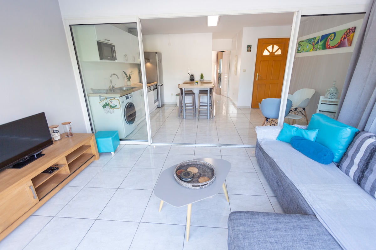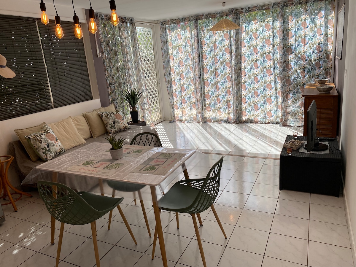 50 m2 koko huoneisto: erittäin miellyttävä, moderni ja viihtyisä 2-4 hengen huoneisto (ihanteellinen perheelle tai 3 aikuiselle), katettu kuisti ... Saint-Pierren laguunin portilla ... ihanteellinen sijainti ranta/meri/kaupunki/vuori/kierrokset .... Kuuluisan ST Pierren lauantai-aamun MARKKINOIDEN, rannan, kauppojen, sataman, yöelämän... pyöräreitin, rantalentopallon, leijalautailun... vieressä, helppo pääsy Sud Sauvageen ja Volcanoon KAIKKI MUKAVUUDET / WIFI