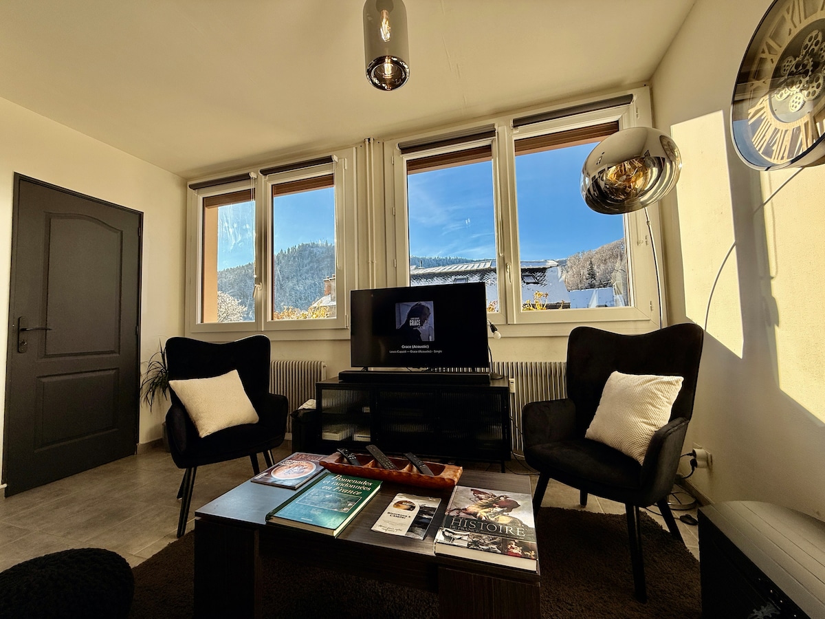 Hiljainen 40 m²: n huoneisto, jossa on makuuhuone, jossa on 160 x 200 cm vuode, olohuone, jossa on vuoteeksi muunnettava sohva 140 x 190 cm. Kylpyhuone, keittiö, Senseo-kahvinkeitin, TV, wifi, pysäköinti. Vaellusreitit lähtevät suoraan huoneistosta, 5 minuutin ajomatka La Bourbouleen, 15 minuutin ajomatka Mont Doreen.