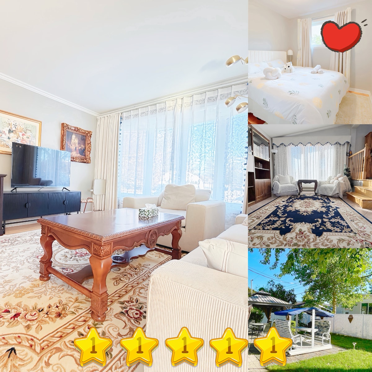 Rentoudu tässä kauniissa modernissa talossa, jossa on master-sviitti ja viisi makuuhuonetta. Talossa majoittuu mukavasti jopa 10 henkilöä, ja se sijaitsee rauhallisella alueella, jossa on ilmainen pysäköinti. Tämä kohde on vain muutaman minuutin päässä julkisista liikennevälineistä, joilla pääsee Montrealin keskustaan, ja se on ihanteellinen perheille, kaveriporukoille tai viikonloppumatkoille. Nauti tilavasta ylellisestä kodista, jossa on täysin varusteltu keittiö.