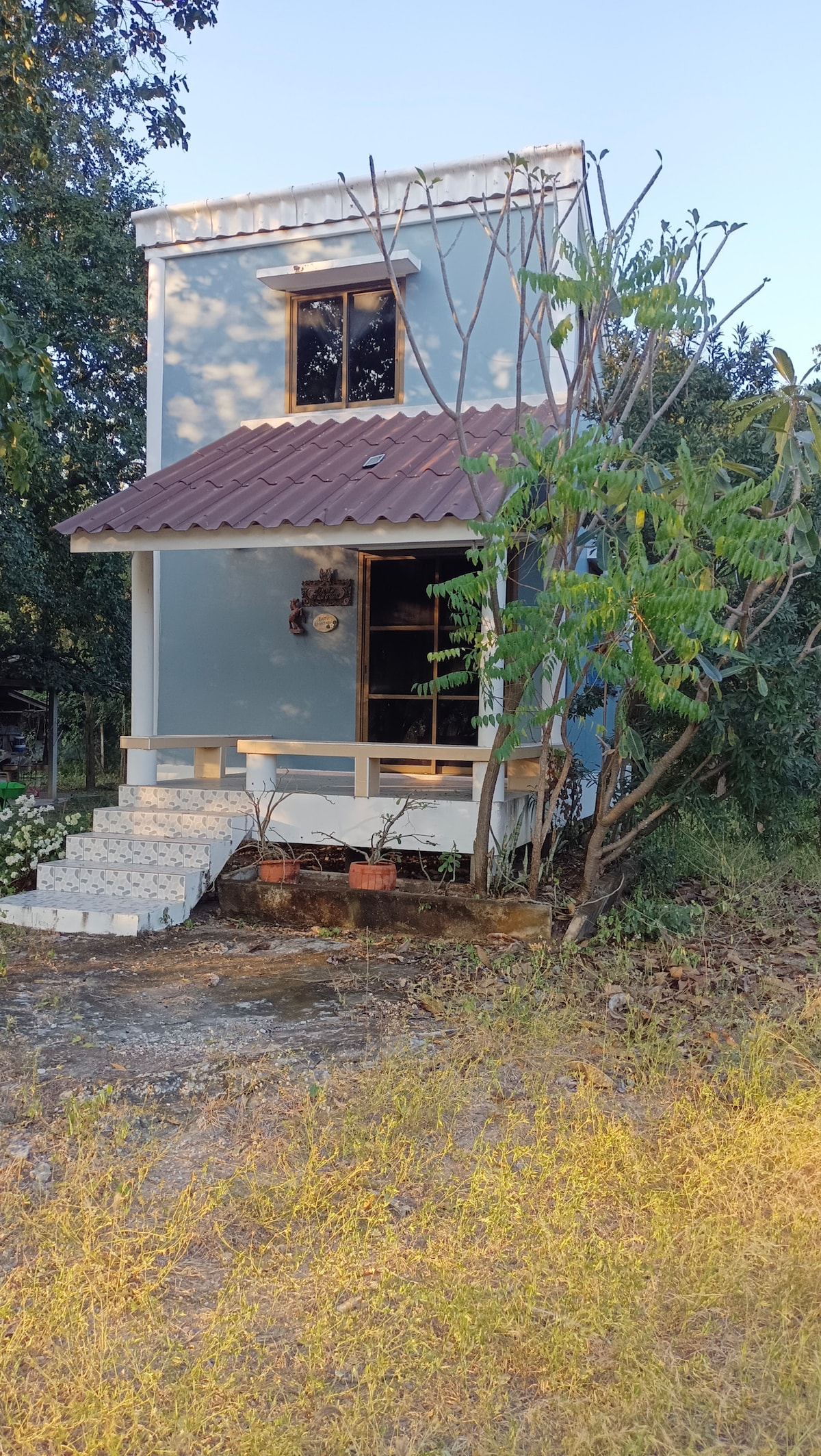 ผ่อนคลายกันพร้อมหน้าในที่พักแสนสงบ Rauhallinen maaseutukoti riisipeltojen ympäröimänä. Tilava 2-kerroksinen talo, jossa on 3 makuuhuonetta, 2 oleskelutilaa, thaimaalainen keittiö ja suuri luonnonlampi. Nauti hedelmätarhoista, avoimista tiloista ja rauhallisesta raittiista ilmasta. Täydellinen pitkiin majoittumisiin, etätyöhön ja luonnon ystäville. Lähellä markkinoita, temppeleitä, sairaalaa ja Krasiao-patoa.