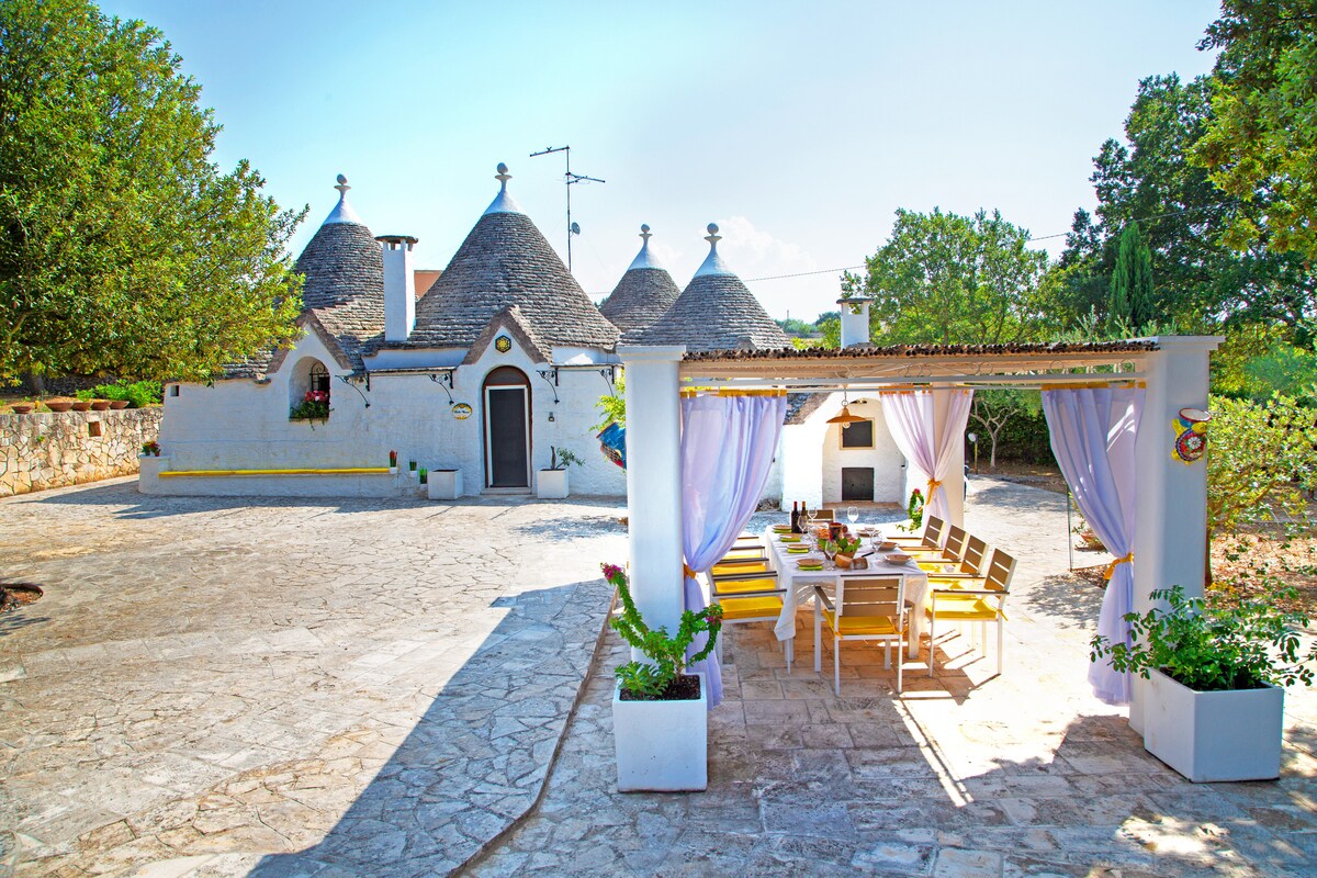 Paikalliset trullarimestarit ovat elvyttäneet tämän taianomaisen paikan käyttämällä paikallisia tekniikoita ja materiaaleja. Tuloksena on yksityinen kohde, jossa voit viettää todellisen kokemuksen. Luomupuutarhamme nollakilometreistä lenkkipolulle maaseudulla, jossa on 1950 alkuperäisiä kasveja ja 45 oliivipuuta. Intiimistä KYLPYLÄSTÄ, joka on käyttökelpoinen sekä kesällä että talvella, majesteettiseen huvimajaan, joka on varattu maatilalla, jossa vehnä oli hakattu. Alberobello on vain 1,5 km: n päässä.