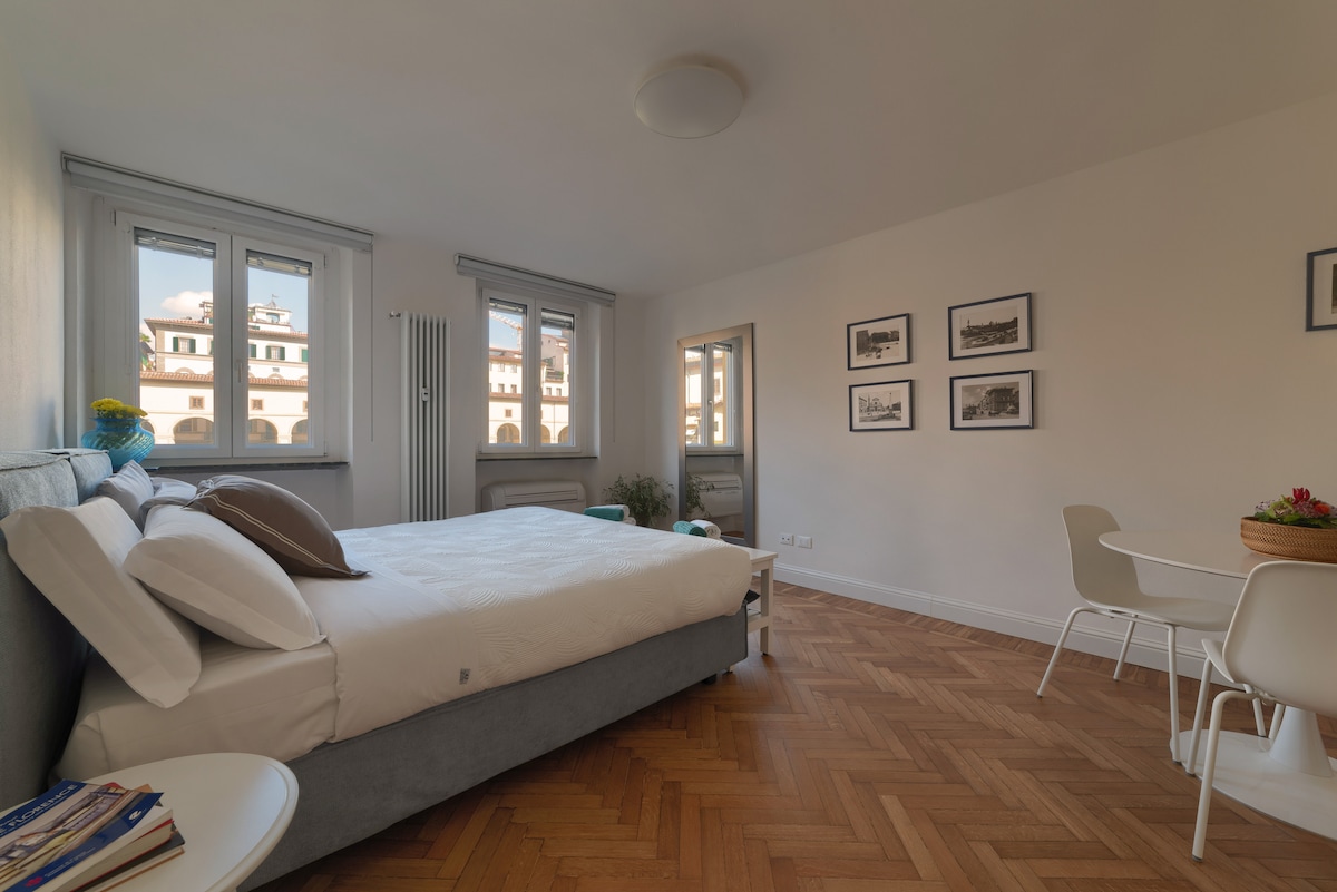 Exclusive and refined apartment on the second floor of a historic 16th-century building, in the heart of Florence. With exposed beams, parquet floors, and handcrafted Florentine furnishings, it combines historic charm with modern design, creating a warm and welcoming atmosphere. Ideal for couples, friends, or families, it offers a central location within walking distance of all the main attractions, from museums to historic squares.
