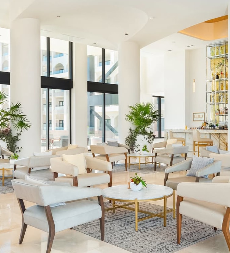 This cozy space for up to four adults features the ultimate comforts for the trendiest of travelers visiting Los Cabos. Slumber in style in the primary bedroom, which has a king-size bed and an ensuite bathroom complete with a walk-in shower, contemporary bathtub, and a dual vanity. In the living room, guests will find an artistic design that appeases the eye and the modern comforts that will soothe your senses.