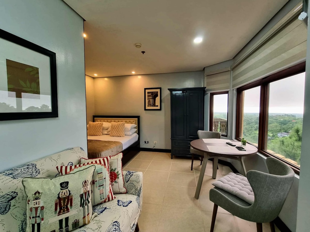 Feel free to visit my profile page for discounts and other ways to book Highlights: *Very spacious balcony w/view *Netflix, Disney+, Primevideo,etc *50-inch QLED TV(HDR10/Dolby) *2 hotel-quality beds & beddings *2 sofa beds w/pullout cup holders *Strong wi-fi and fiber connection *Plates,glasses & cutleries for 6PAX *Cooking,cleaning,bath items included *Tabletop games:Jenga,Poker,Foosball *No Entrance fee. Free parking&baggage service Note: Initial price before configuration is good for 2PAX