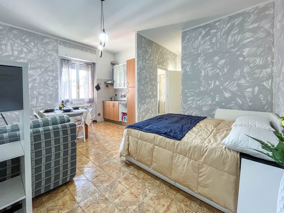 Tervetuloa! Huoneisto on ensimmäisessä kerroksessa, jossa on hissi. Olen valinnut huolellisesti jokaisen yksityiskohdan ja jokaisen esineen sisällä; löydät myös television, ilmastoinnin, mikroaaltouunin, täysin varustetun keittiön, tilavan suihkun ja kaiken tarvitsemasi mukavuuden. Majoitut Brescian keskustassa 500 metrin päässä San Faustinon metroasemalta. Lisäksi vain viiden minuutin kävelymatkan päässä on katettu pysäköintipaikka, jota valvotaan videolla ja joka sisältyy majoittumisen hintaan 💶.
