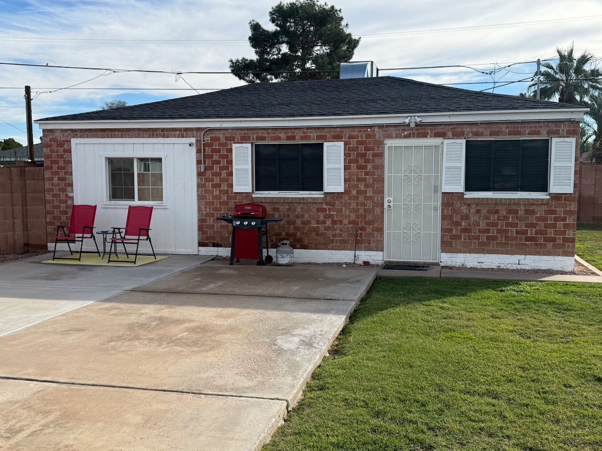 Tunnet olosi kotoisaksi majoittuessasi pienessä 220 neliömetrin vierastalossamme. Tämä on yksiö, jossa on kaikki kodin mukavuudet. Yksityinen kylpyhuone ja keittokomero. Siinä on mukava täysikokoinen vuode. Suuri älytelevisio. Mukava sohva, jossa on ulosvedettävä parisänky. Ilmainen wifi. Olemme lähellä kaikkia sairaaloita, ostoskeskuksia, Downtown Gilbertin yöelämää ja Riparian Preserve @ Water Ranchia.