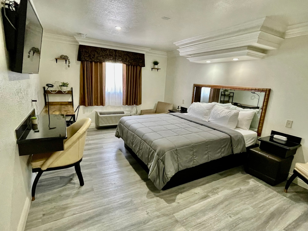 Viehättävä 1 king-vuoteen makuuhuone / ulkouima-allas / motelli