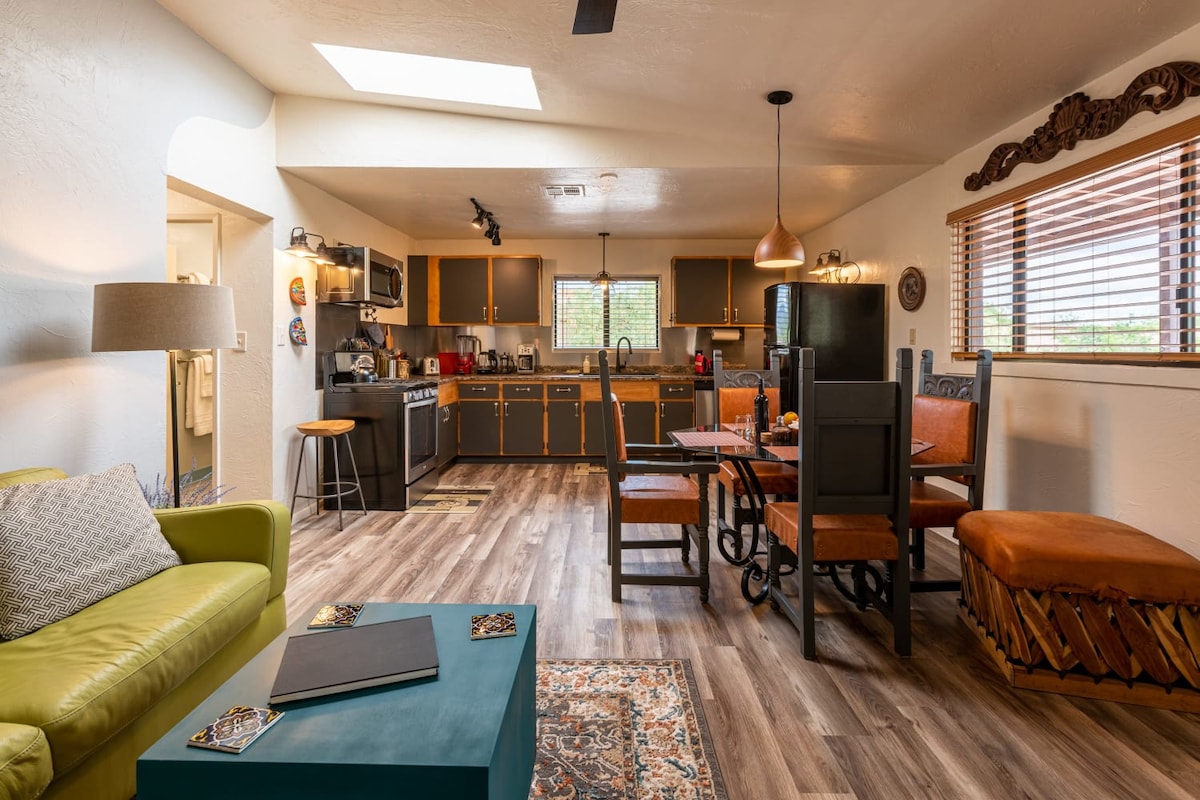 Löydä keidas Arizonan korkealta autiomaasta tästä 2 makuuhuoneen ja 2 kylpyhuoneen Patagonian loma-asunnosta! Tässä taiteellisessa huoneistossa on valoisa sisustus, hyvin varustettu keittiö ja pääsy yhteisön mukavuuksiin, kuten grilliin ja viehättävään patiotilaan. Nauti lintujen tarkkailusta paikallisessa paratiisissa, kuten Sonoita Creekin osavaltion luonnonalueella, vietä päivä Patagonia-järven vesillä tai nappaa viipale Velvet Elvis Pizza Companyssa. Päätä yö kertomalla tarinoita ja s'moreseja jaetun nuotiopaikan ympärille!