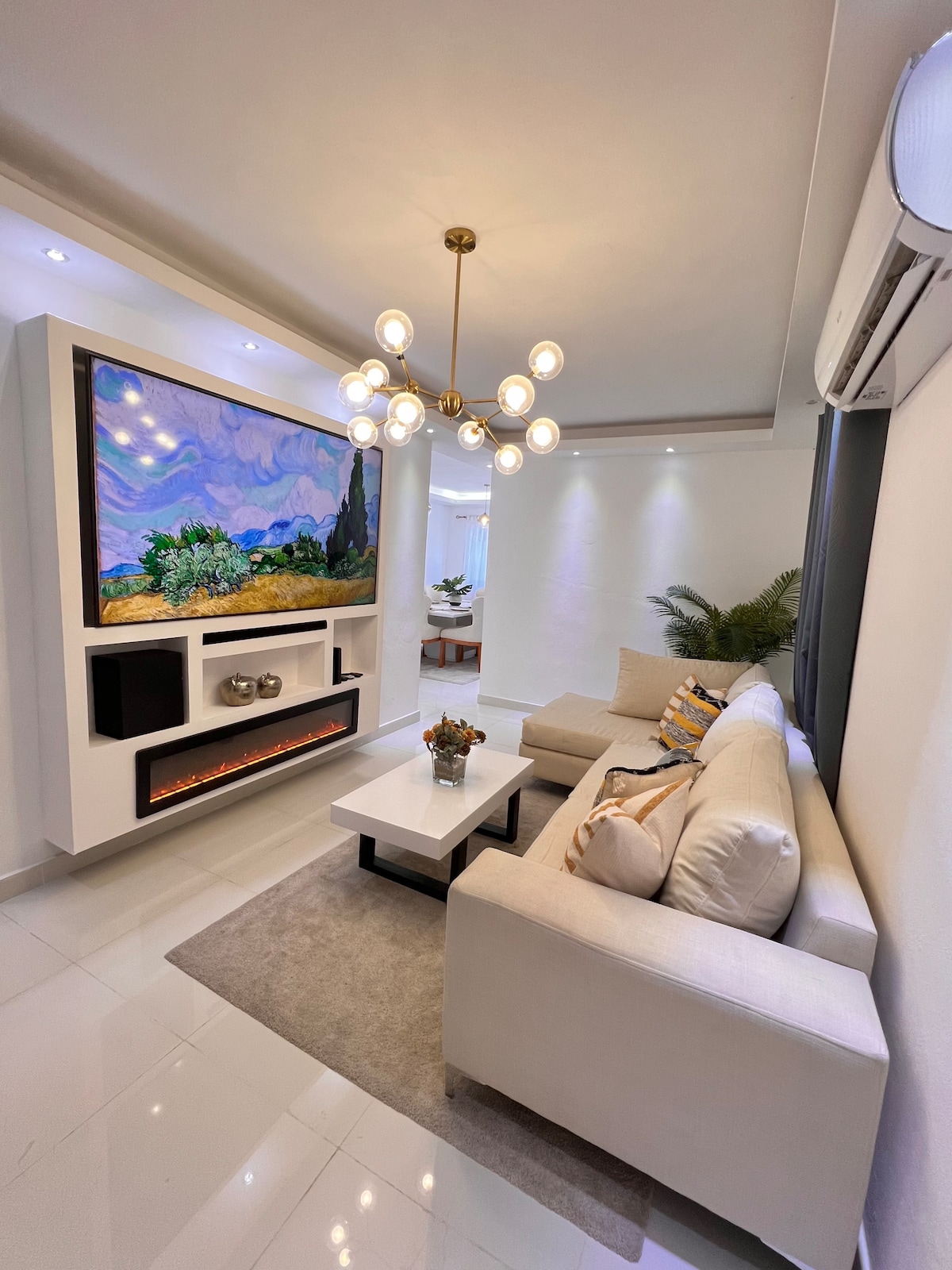 Disfruta de las comodidades de lujo durante tu estadía en este hermoso apartamento de 2 habitaciones/2 baños, ubicado en una comunidad privada, frente a la puerta #1 del Mirador norte, a pocos metros de Supermercados, puestos de comida y la estación del metro para fácil transporte y rodeado de zonas verdes. Altamente equipado para cubrir todas tus necesidades y hacer de tu estadía un momento memorable.