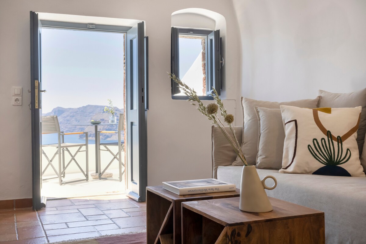 Mirabo Villan samanniminen sviitti on rakennettu maisonette-tyyliin, ja siinä on kaksi eri tasolla olevaa makuuhuonetta, joissa on parivuoteet, mikä tekee siitä ihanteellisen perheille, ystäväryhmille ja häämatkailijoille, jotka haluavat nauttia lomastaan erittäin mukavalla ja rentouttavalla tavalla. Kaksi erillistä ja tilavaa kylpyhuonetta on kauniisti sisustettu, ja olohuone tarjoaa tuntikausia rentoutumista. Toisessa kerroksessa voit nauttia kalderan ja tulivuoren näkymistä ja auringonlaskusta yksityiseltä parvekkeelta.