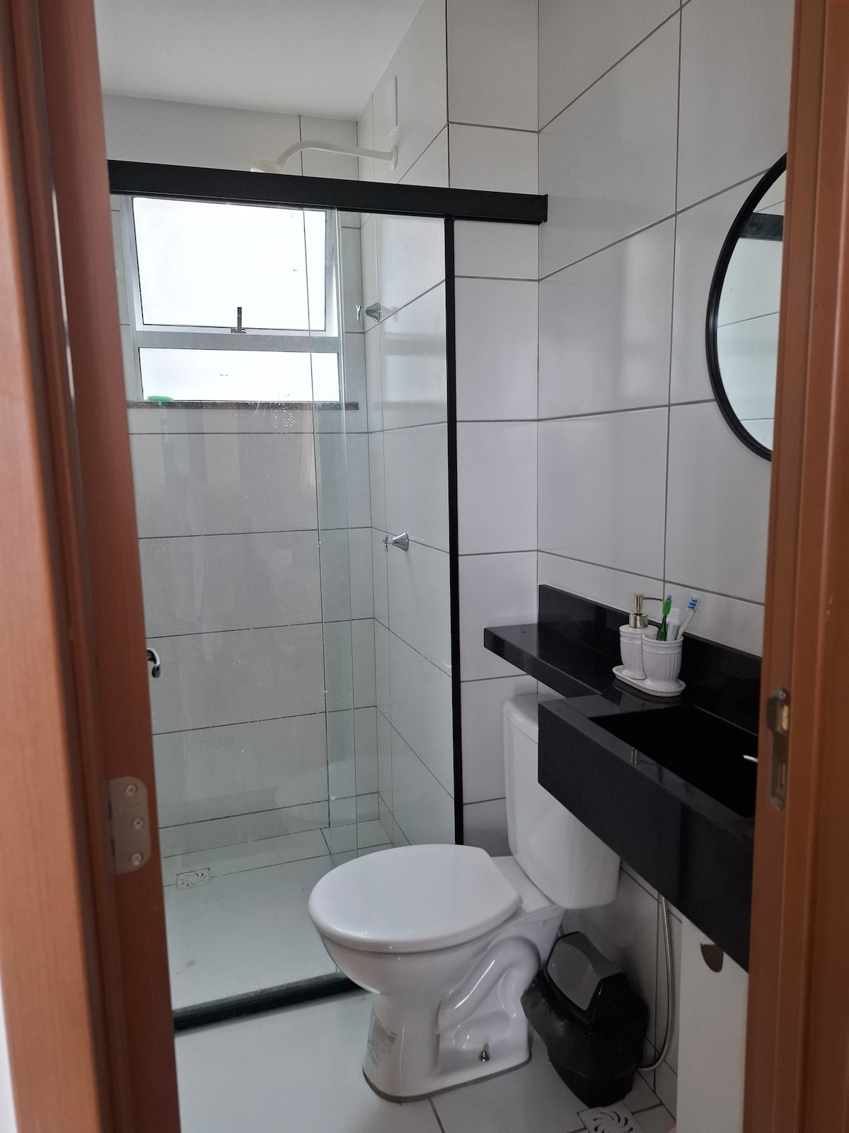 Täydellinen huoneisto, 5 minuutin päässä Litorâneasta, kaikki mukavuudet erinomaista majoittumista varten: Täysin varusteltu✔ keittiö, jossa on jääkaappi, liesi, mikroaaltouuni, sähkökäyttöinen kahvinkeitin, tehosekoitin, voileipägrilli, kattiloita, paistinpannuja, lautasia ja ruokailuvälineitä. Takuulla ✔ viihdettä TV:n ja MAX-kanavan kautta. ✔ Ilmastoidut huoneet, joissa on pimennyskaihtimet rauhallisia öitä varten. ✔ Kylpyhuone, jossa on sähkösuihku. ✔ Turvallisuus ja vapaa-aika: turvaverkot, uima-altaat ja grillaus (varaus).