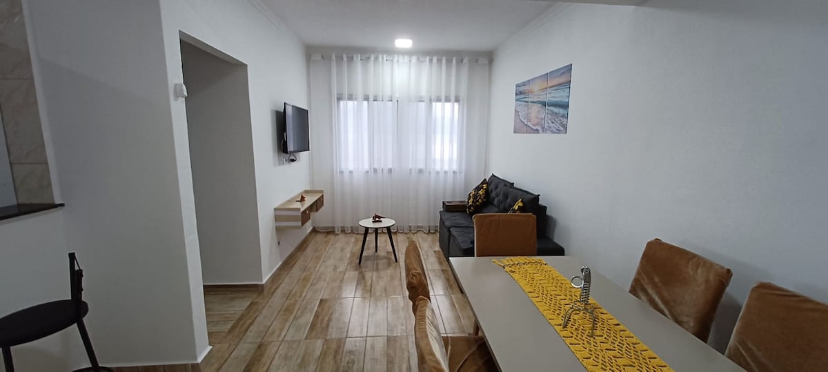 Rentoudu ja lataa akkusi tässä ainutlaatuisessa ja rauhallisessa huoneistossa, joka sijaitsee korttelin päässä Itararé/São Vicenten rannan kärjestä: olohuone/yksityinen makuuhuone, 4 mukavaa majoitustilaa, 2 tuuletinta, 1 ilmastointilaite, keittiö/pesutupa/kylpyhuone, Wi-Fi, näyttö ja HDMI-kaapeli, 1 pysäköintipaikka (jos käytettävissä), huone- ja rantalelut. Jääkaappi/keitin/mikroaaltouuni/blender/hedelmäpuristin. Lautanen/lasit/kuppi/lautaset/ruokailuvälineet pöytä ja keittiö/pirex/keittoastiat/vaatteet/vuode/kylpyhuone/pöytä/tyyny/peitto.
