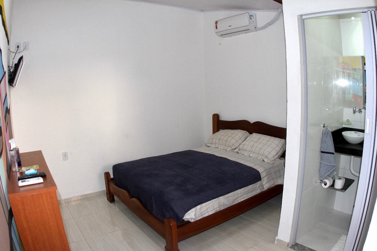 Venha se hospedar neste quarto com banheiro privativo, perfeito para quem busca comodidade e bem-estar. Suíte com cama de casal confortável, frigobar, mesa com cadeiras, tv de tela plana, ar condicionado e ducha higiênica. Localização próximo ao mar, a lagoa e também ao centro da cidade.